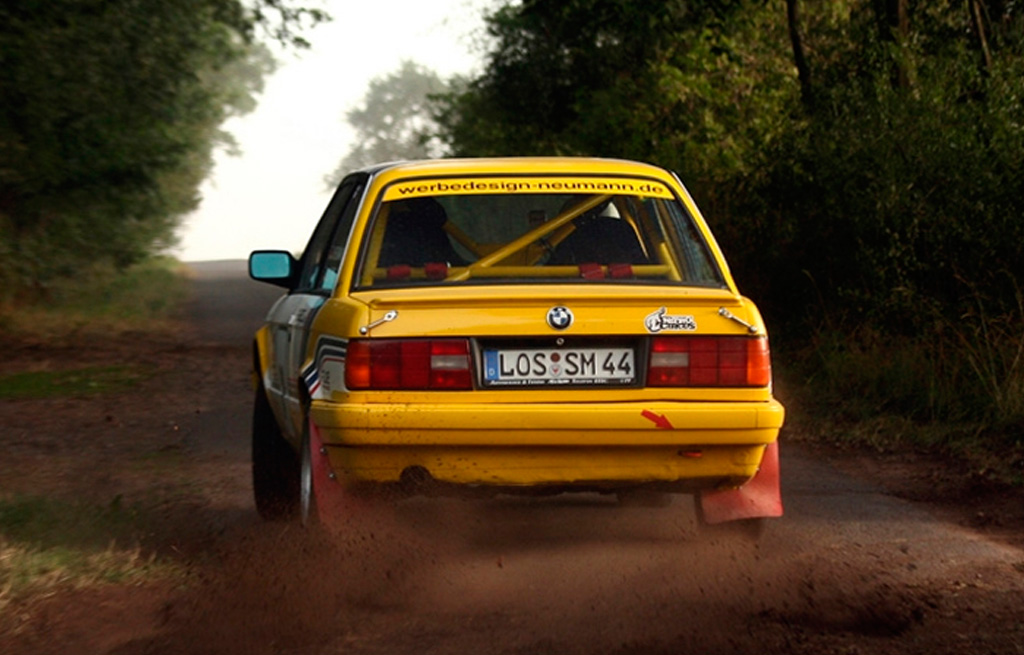 Da war er, der lang ersehnte Start zur ersten WP, die fast eine reine Schotterprüfung ist. Mitten in der WP, kam eine Haarnadel, an der ich meine Handbremse einsetzte, doch Pustekuchen, die hat ihren eigenen Willen und hat heute kein Bock auf querfahren. Da wir ohne Schotterreifen unterwegs sind, lässt sich der 318er auch ohne Handbremse gut driften.